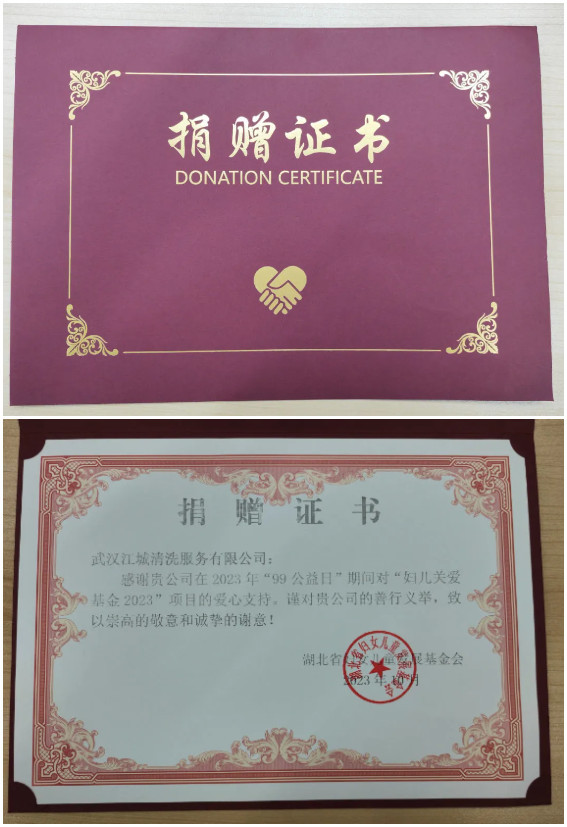 江城清洗,一家植根清潔行業(yè)27載的公司,一家歷經(jīng)兩代女性*,初心不變的公司,為了支持湖北省婦女兒童公益事業(yè),于2023年“99公益日”期間向江漢區(qū)婦兒關(guān)愛(ài)基金捐贈(zèng)了善款。這一善舉旨在資助武漢市江漢區(qū)婦聯(lián)開(kāi)展婦女兒童關(guān)愛(ài)活動(dòng),為社會(huì)婦女和兒童提供更多關(guān)愛(ài)與幫助。