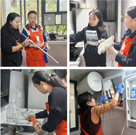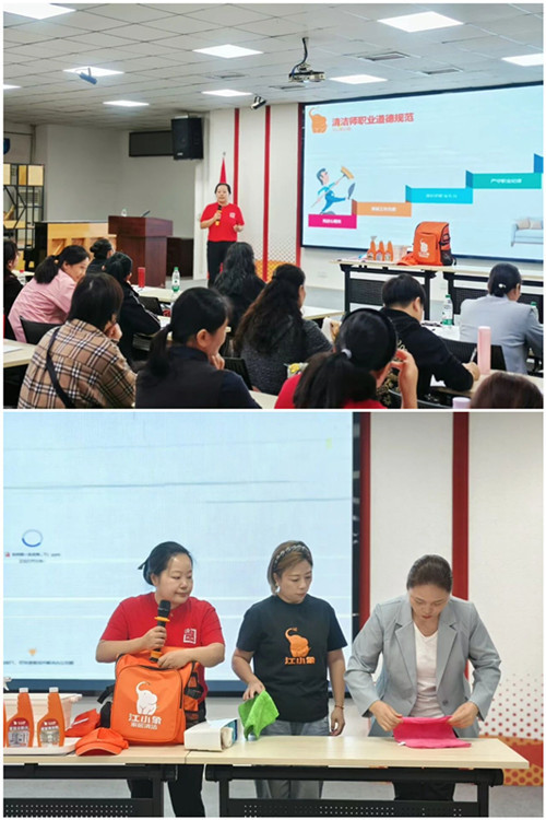 錢慧琴、蔣蘭蘭兩位講師則通過場景化教學(xué),示范入戶溝通話術(shù)、演練精細(xì)擦窗流程、規(guī)范六區(qū)清潔操作,傳遞可直接復(fù)用的實(shí)戰(zhàn)經(jīng)驗(yàn)。